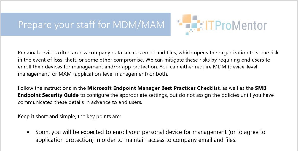 Communication templates intended for consultants. These can be used to instruct your customers how to register for Multi-Factor, and set up devices and applications for use with Microsoft 365. Provided in .DOCX format so you can modify the header/footer with your own branding. This product is free, or name your own price to support my work.